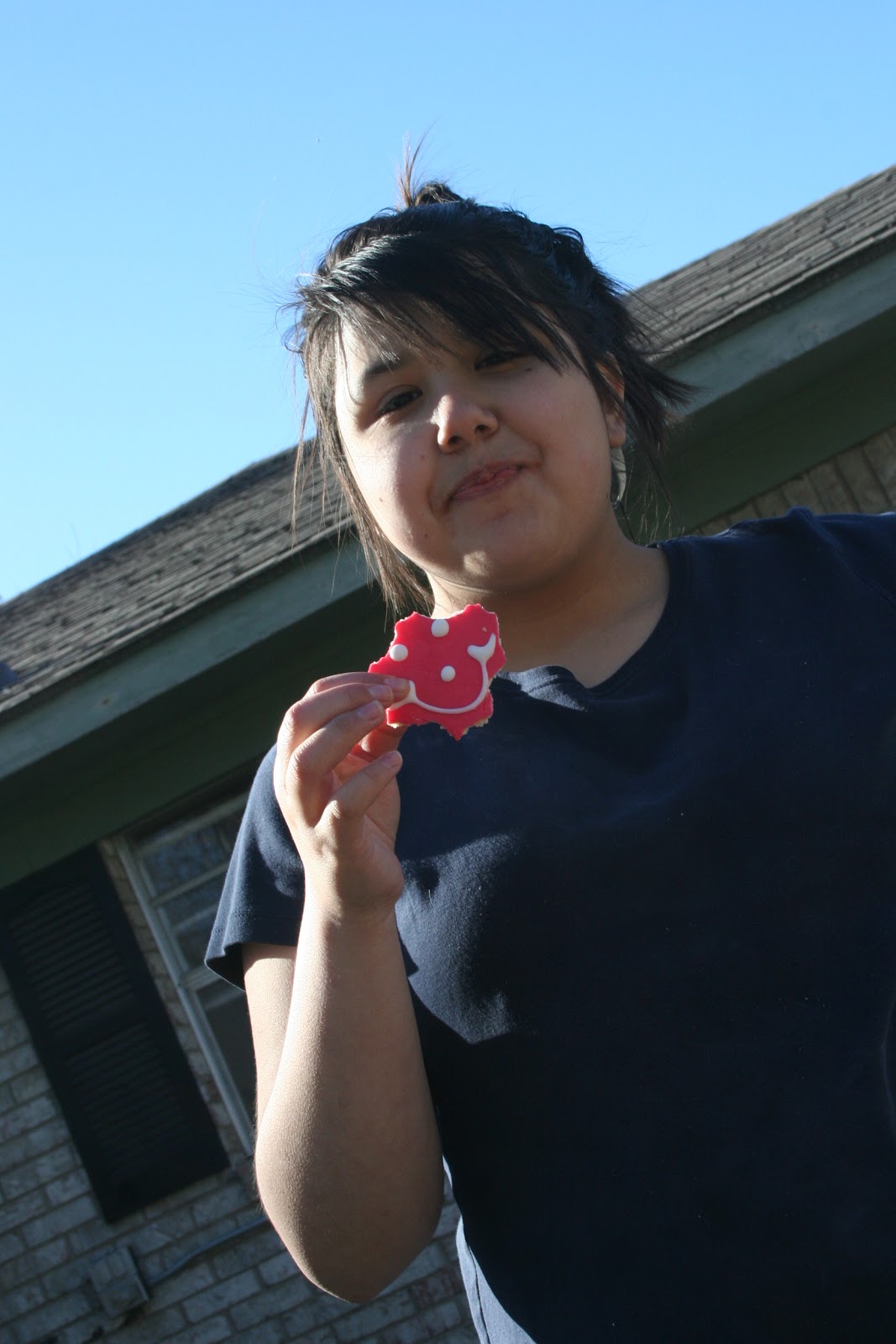 Now, opening the package is part of the fun.  I will admit.  However, EATING the cookies is a much bigger part!  Also, in these pics you get a tiny sneak peak of our new house, enjoy because this is it for a bit!!!  The cookies themselves were good, they are sugar cookies.  They are made to be firm (I’m assuming to help with the shipping process) so they are a bit crumbly when you eat them.