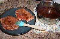 - Season both sides of the pork chops with salt and black pepper. Brush the chops with the sauce from the saucepan.