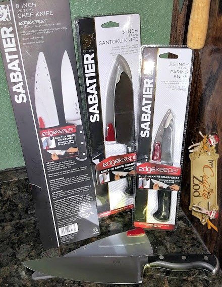 We’ve recently had the pleasure of reviewing the Sabatier Forged Stainless Steele Knife with EdgeKeeper. We’ve got a ton of knives, but really feel like we can never have too many. haha. This is why we have the magnetic knife strip on the wall, we have a second but haven’t gotten it up yet. As you can see from the picture, it’s time! If you don’t have one, I highly recommend them as they keep your knives from harm and can be kept high enough that the kids can’t reach!