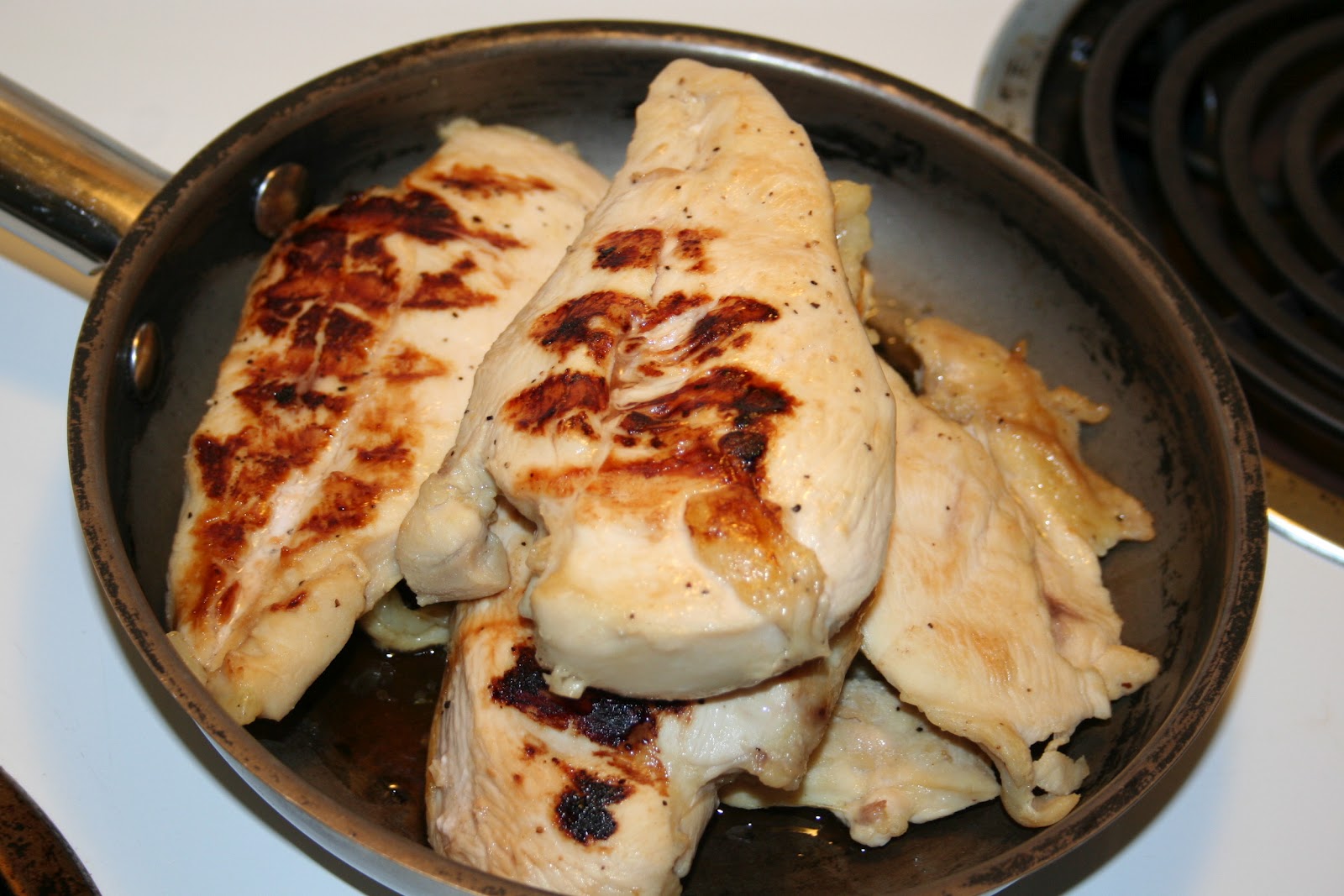 2. Cook chicken. Make sure it’s cooked through. If you cook chicken breasts, then cut them in half lengthwise so that it isn’t so thick.