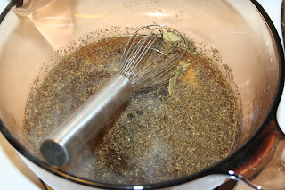 1.  Bring chicken broth, soy sauce, apple cider vinegar and bay leaves to a boil.