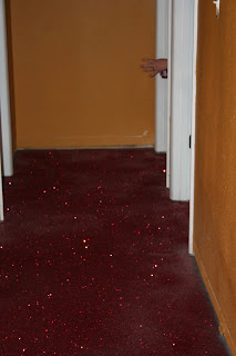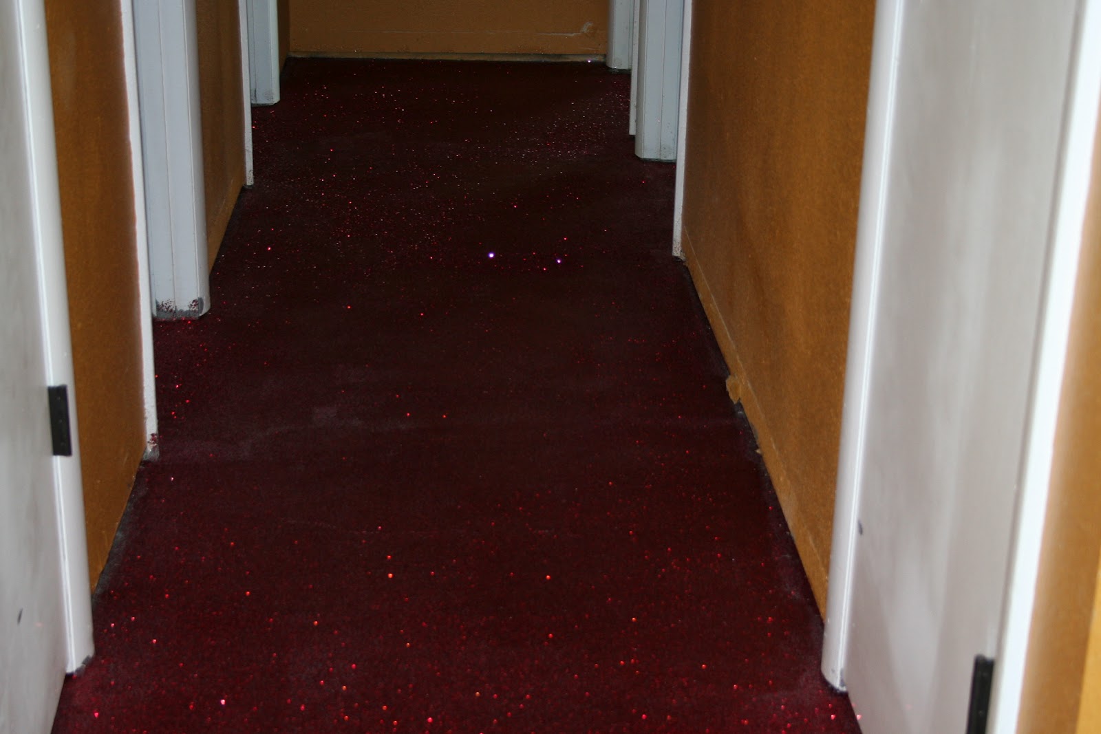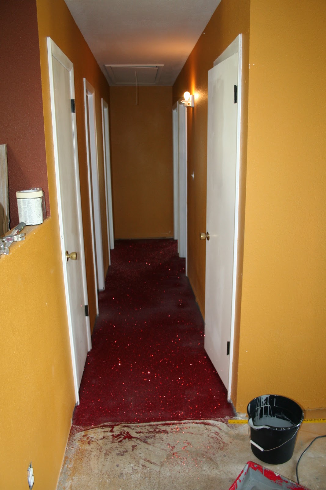 As part of our remodel, we decided to do the hallway floor in red glitter. We wanted to have a red carpet look, as we decorate the hall with music posters. It came out more like Dorothy’s red glitter shoes. Pretty, but not very manageable… We’ll discuss that later… First, here is the how to!
