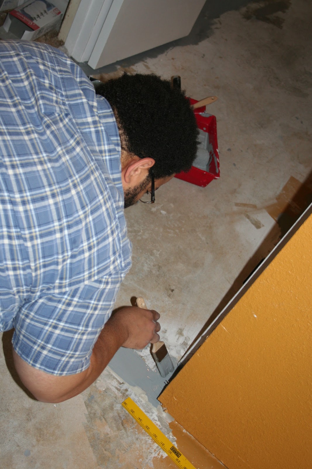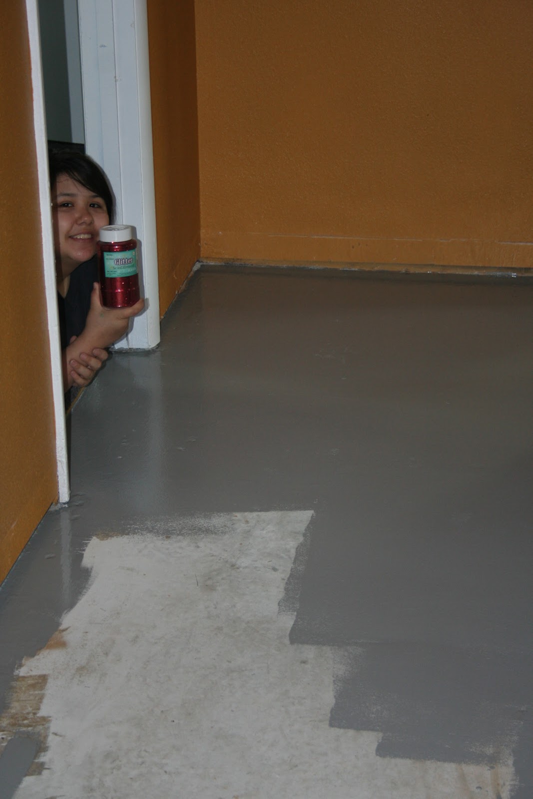 Completely, and I mean completely, clean the concrete floor of anything that may be on it. You want the concrete to be spotless and dry. Lots of sweeping. Be prepared. 😀