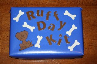 In order to get the paw prints in the background of the page, I found some online and copied and pasted them to a document, changed them to a watermark and printed. Then I used the same sheet to add the Ruff Day Kit explanations on it. I did the font over the watermark in brown ink.
