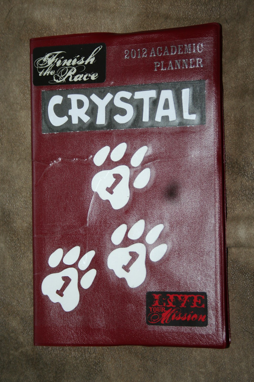We all know how important organization is for success. I am very strict on Monkey about keeping track of her assignments in a calendar so that she can be more successful in keeping track of her work. I am also, as we all know and to my Monkey’s total aggravation, a cheapskate!!! (We decided on frugal, didn’t we? That’s right, I’m FRUGAL!!!) SO, at Dollar Tree, they have planners for $1. I live out of mine! She really wanted one of the pretty ones, but they cost way too much, so I decided to personalize hers on my own! So, I put her name on it and used my Xyron Sticker Maker to stick it on, then covered it in contact paper. Unfortunately, my contact paper got bent up, so it has a few creases. I’m going to just pretend it was decorative!!! LOL. Here is the project!